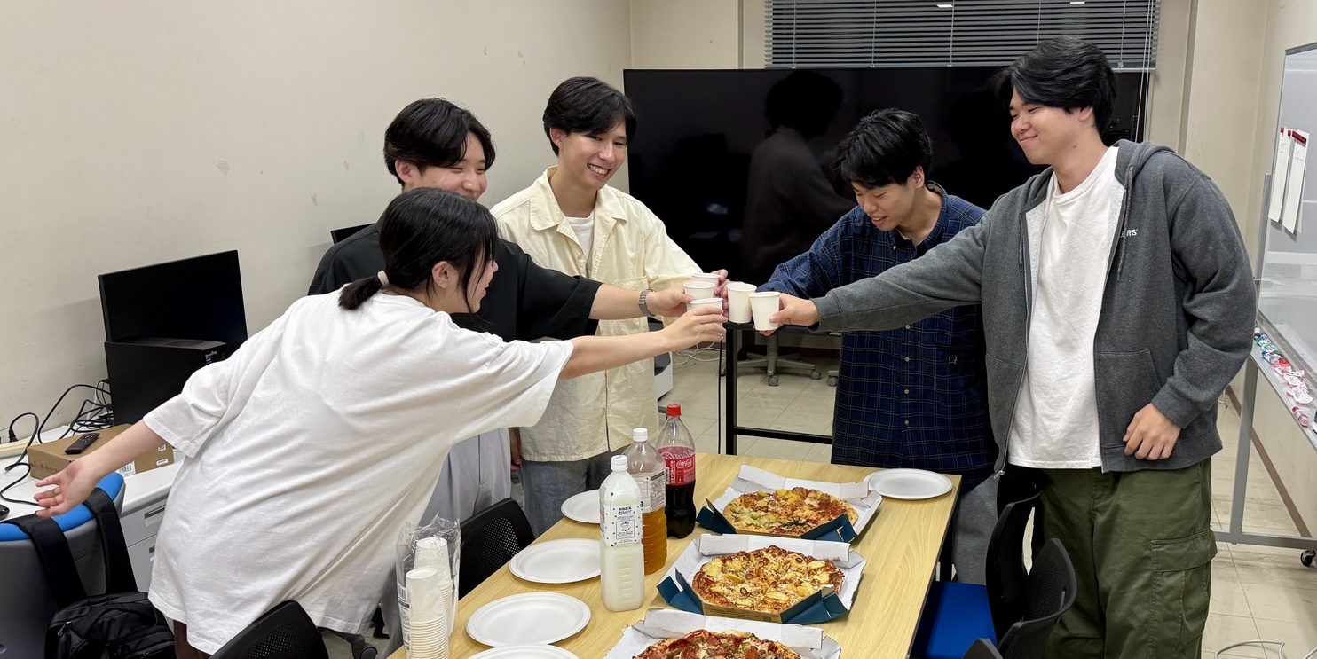 情報ゼミも正式にスタートし,ピザを囲んだプチパーティを行いました.公私ともにゼミを盛り上げてください.今後の活躍に乞うご期待です.